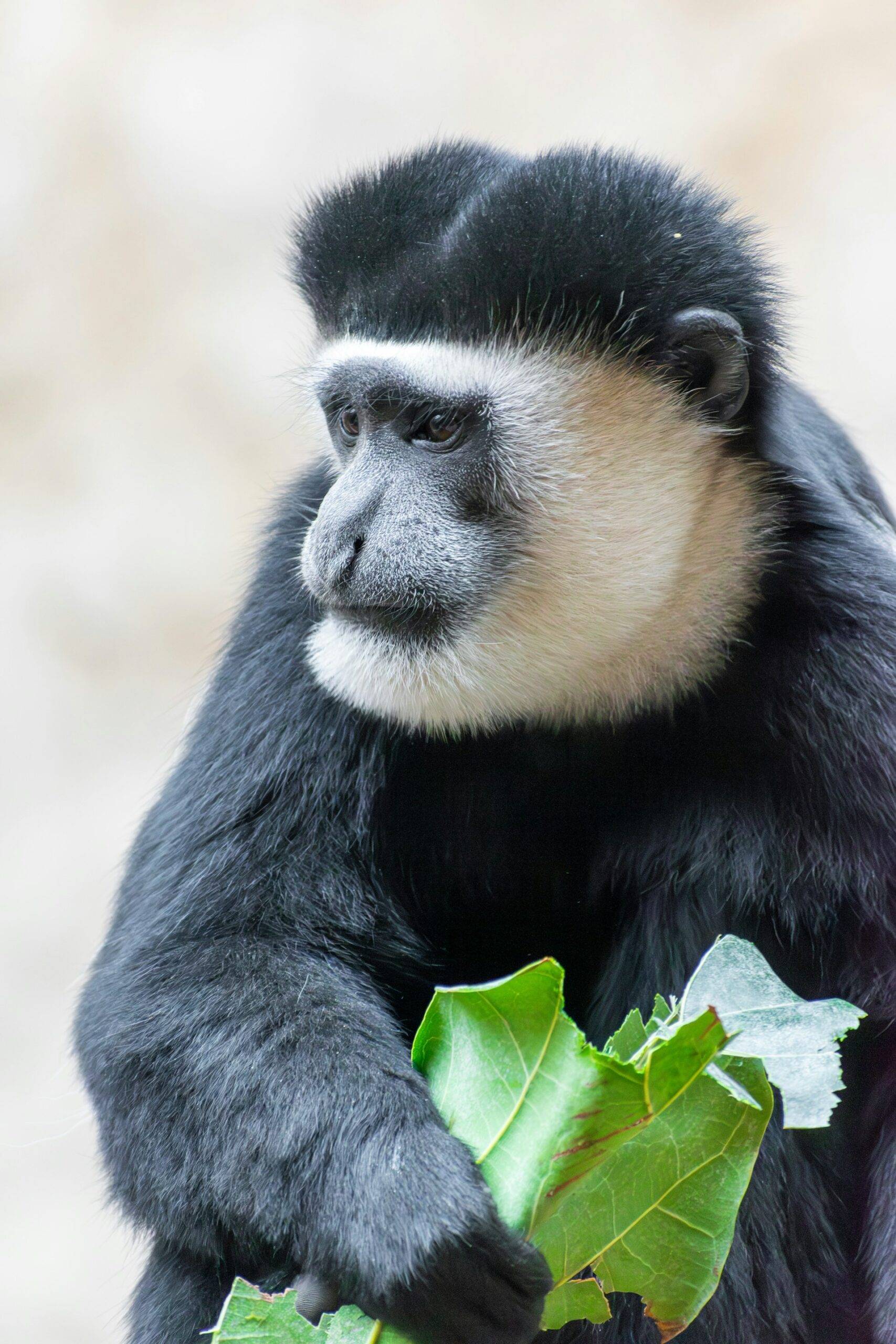 - Fur Coloration: As the name suggests, black-and-white colobus monkeys have a distinct black and white coloration. Their body is predominantly covered in black fur, while their face, hands, and tail have striking white markings. This stark contrast in colors makes them easily recognizable in the dense forest canopy.