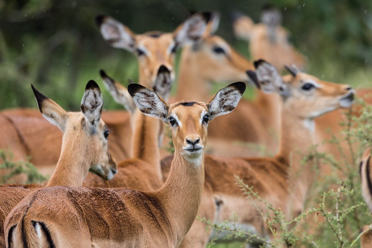 - Landscape: Savanna plains, acacia woodland, lakes, papyrus swamps